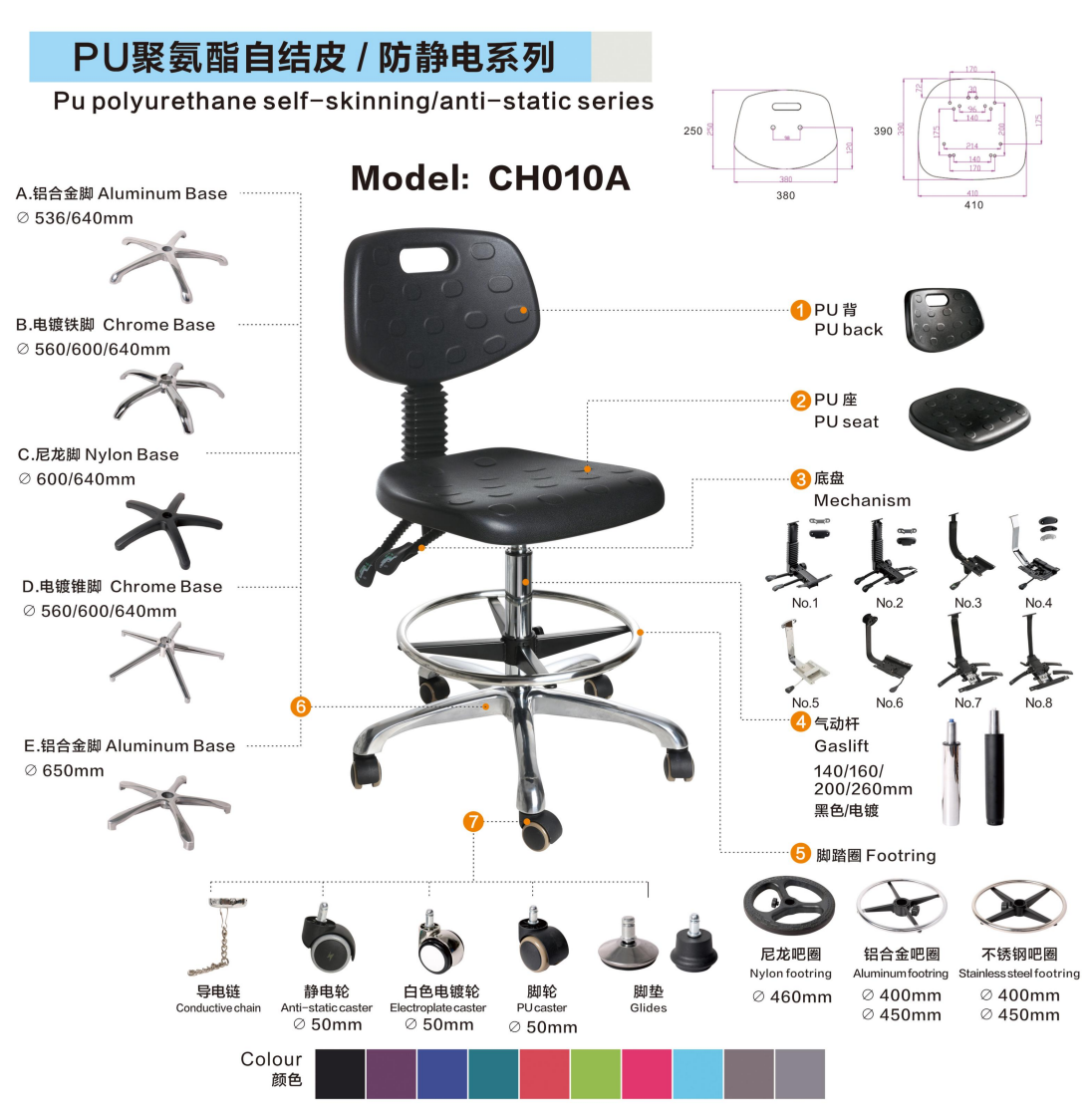 Customization Options: Color, caster type, foot ring, armrests